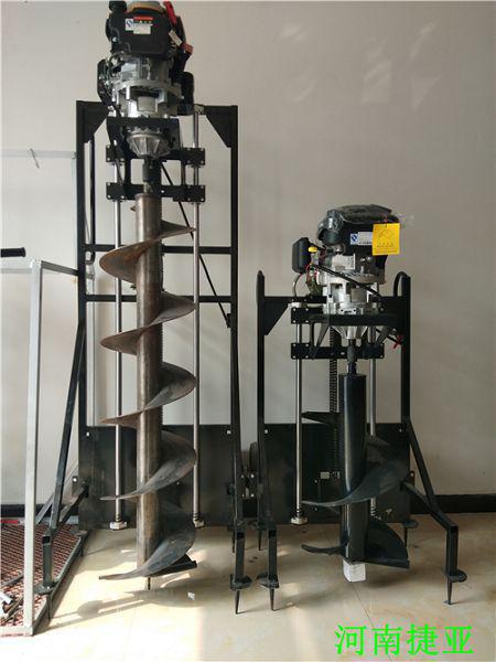 河南捷亞植樹挖坑機深淺控制更加好,深淺控制怎么一步到位,手推式挖坑機可以更還控制挖坑的深度,并且可以大直徑鉆坑一人操作就行,四沖程225CC大馬力發(fā)動機,適合長時間大量工作,可帶400/500/600MM等規(guī)格鉆頭使用??梢詢蓚€人抬著使用,也能夠裝配在支架上使用,發(fā)動機:動力輸入部分。減速箱:增加扭矩,動力輸出部分(本機采用弧齒免維護減速機)。操縱裝置:手握操作及腳踩操作機械部分。腳輪:采用加粗輪胎便捷移動部分。定位錐:消除鉆頭工作時產(chǎn)生的扭力。工作鉆頭:螺旋工作鉆頭部分。使用操作方法;啟動發(fā)動機,手握操作桿,加大油門,提高發(fā)動機轉(zhuǎn)速下按操作桿,可配置多種規(guī)格的鉆頭打出不同大小的孔,用于種植各種根莖的苗木,也可用于木桿,電線桿,水泥桿,大棚桿的載植鉆眼,本機鉆頭采用錳鋼合成更加的堅硬??筛鶕?jù)樹種,選配多種規(guī)格的鉆頭,以滿足用戶需要。栽立7米,8米,10米,12米水泥桿,下鉆出土一次性完成。