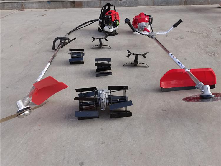 小型鋤草機是現(xiàn)代農(nóng)業(yè)農(nóng)村果園必備的農(nóng)用工具,鋤草機可根據(jù)各種農(nóng)作物的需要配不同寬度的刀具,操作方式有肩背,側(cè)掛,手推等多種,不同款式對應(yīng)的用途也不一樣,鋤草機主要由汽油發(fā)動機機、減速齒輪、行走機構(gòu)、松土刀 除草刀(高錳鋼)、深度調(diào)節(jié)機構(gòu)等組成。汽油機提供動力,通過聯(lián)軸器與減速齒輪軸連接。工作部件由刀盤和立式松土刀組成,分為兩組,由減速齒輪帶動。深度調(diào)節(jié)機構(gòu)由手柄、鏈輪及鏈條組成,通過改變機架的高度實現(xiàn)松土深度的調(diào)節(jié)。