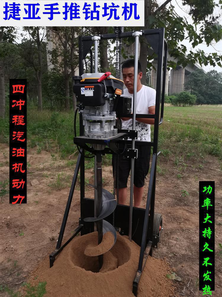 電線桿打洞新型手推鉆坑機器,其結(jié)構(gòu)包括直立機架:支撐機器,保護操作者。機座連接發(fā)動機及下壓部分。發(fā)動機:動力輸入部分。減速箱:增加扭矩,動力輸出部分(本機采用弧齒免維護減速機)。操縱裝置:手握操作及腳踩操作機械部分。腳輪:采用加粗輪胎便捷移動部分。定位錐:消除鉆頭工作時產(chǎn)生的扭力。工作鉆頭:螺旋工作鉆頭部分。使用操作方法;啟動發(fā)動機,手握操作桿,加大油門,提高發(fā)動機轉(zhuǎn)速下按操作桿,同時也可以用腳踩踏板,下壓至底點,然后松開腳,向上抬操作桿,在滑桿上兩條壓力彈簧共同作用下,機座回升到初始位置,油門推回怠速位置工作結(jié)束?,F(xiàn)在一個機械化時代,不少地方都離不開機械設(shè)備,俗話說方法用對事半功倍 選擇新農(nóng)電線桿打洞機是選擇高效率打洞機,打洞鉆孔挖坑用途多多捷亞電線桿打洞機足以勝任多種工作。電線桿打洞機訂制鉆頭長度可大可小,選擇捷亞電線桿打洞機是靠譜。本公司供應(yīng)的電線桿打洞機設(shè)備一機多用,可配置多種規(guī)格的鉆頭打出不同大小的孔。