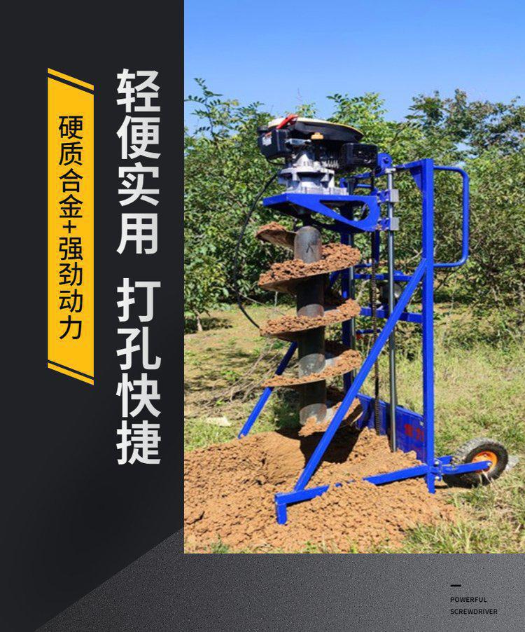 (1)手推式帶架子挖坑機(jī)有安全省力,晃動(dòng)小,重量輕,挖坑不費(fèi)勁等優(yōu)點(diǎn)!適合各種小苗木的種植,各種水泥桿,木桿等的栽桿鉆孔作業(yè)。