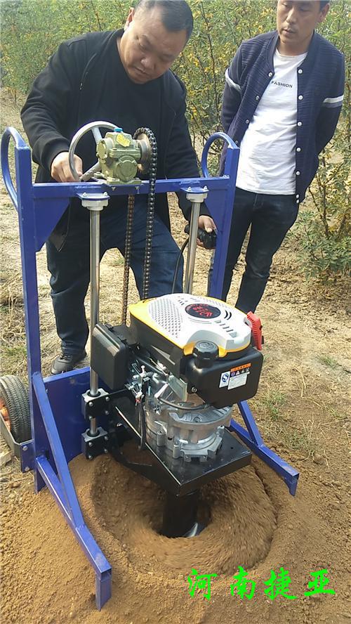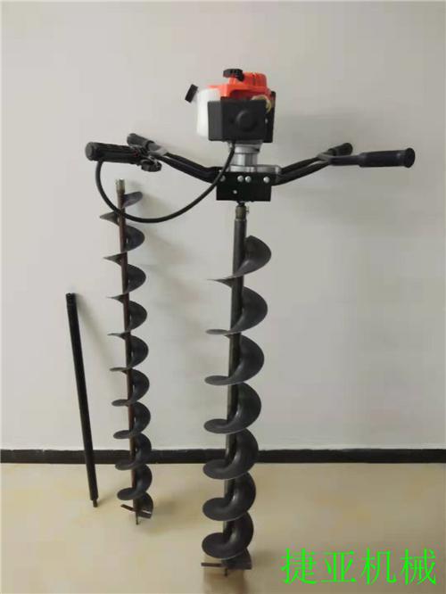 汽油鉆坑機(jī)電桿坑加長新標(biāo)準(zhǔn),專為電力工程栽木桿,通信桿,水泥桿打坑作業(yè)。農(nóng)網(wǎng)改造的打坑機(jī)可在山區(qū)丘陵地區(qū)進(jìn)行作業(yè),對于惡劣地區(qū)都能進(jìn)行作業(yè),汽油機(jī)動力配置,方便快捷的完成各種小區(qū),建筑工地的管道清理工程。本機(jī)大馬力汽油發(fā)動機(jī)為動力源,超大扭矩減速機(jī),可帶動各種大深度螺旋鉆頭進(jìn)行往洞外運(yùn)輸泥土作業(yè)。本機(jī)還可配置其它鉆頭進(jìn)行電力栽桿鉆孔,其結(jié)構(gòu)包括直立機(jī)架:支撐機(jī)器,保護(hù)操作者。機(jī)座連接發(fā)動機(jī)及下壓部分。發(fā)動機(jī):動力輸入部分。減速箱:增加扭矩,動力輸出部分(本機(jī)采用弧齒免維護(hù)減速機(jī))。操縱裝置:手握操作及腳踩操作機(jī)械部分。腳輪:采用加粗輪胎便捷移動部分。定位錐:消除鉆頭工作時(shí)產(chǎn)生的扭力。工作鉆頭:螺旋工作鉆頭部分。使用操作方法;啟動發(fā)動機(jī),手握操作桿,加大油門,提高發(fā)動機(jī)轉(zhuǎn)速下按操作桿,同時(shí)也可以用腳踩踏板,下壓至底點(diǎn),然后松開腳,向上抬操作桿,在滑桿上兩條壓力彈簧共同作用下,機(jī)座回升到初始位置,油門推回怠速位置工作結(jié)束。安全可靠,性能優(yōu)異,本機(jī)滑桿上裝有壓力彈簧輔助人力起升鉆頭,省力、省時(shí)效率高,質(zhì)量優(yōu),成本低,裝有腳輪使移動輕松便捷。