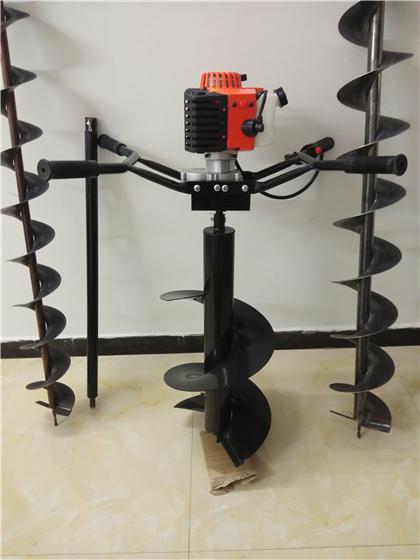 捷亞小型挖坑機(jī)有單人手提式,雙人手提式,獨(dú)輪推車式和雙輪推車式,多種規(guī)格任您選擇。大馬力汽油發(fā)動(dòng)機(jī)為動(dòng)力源,超大扭矩減速機(jī),可帶動(dòng)各種大深度螺旋鉆頭進(jìn)行往洞外運(yùn)輸泥土作業(yè)。栽樹(shù)打坑機(jī)還可配置其它鉆頭進(jìn)行電力栽桿鉆孔,配置短鉆頭進(jìn)行各種苗木種植打坑作業(yè)。一機(jī)多用,功能強(qiáng)大。挖坑機(jī)操作結(jié)構(gòu)變位靈活,定位快捷、準(zhǔn)確,能實(shí)現(xiàn)鉆頭規(guī)格不同高度、不同角度的地面鉆孔,挖坑,打洞作業(yè),還可頂、幫同時(shí)進(jìn)行鉆孔作業(yè),大大縮短了種植鉆坑作業(yè)時(shí)間,提高了挖坑效率及操作人員的舒適性。此外自動(dòng)油門裝置、操作臺(tái)防護(hù)裝置也可降低人員勞動(dòng)強(qiáng)度,提高安全性。手推挖樹(shù)坑機(jī)的機(jī)構(gòu)是包含直立機(jī)架:支撐機(jī)器,保護(hù)操作者。機(jī)座連接發(fā)動(dòng)機(jī)及下壓部分。發(fā)動(dòng)機(jī):動(dòng)力輸入部分。減速箱:增加扭矩,動(dòng)力輸出部分(本機(jī)采用弧齒免維護(hù)減速機(jī))。操縱裝置:手握操作及腳踩操作機(jī)械部分。腳輪:采用加粗輪胎便捷移動(dòng)部分。定位錐:消除鉆頭工作時(shí)產(chǎn)生的扭力。工作鉆頭:螺旋工作鉆頭部分。