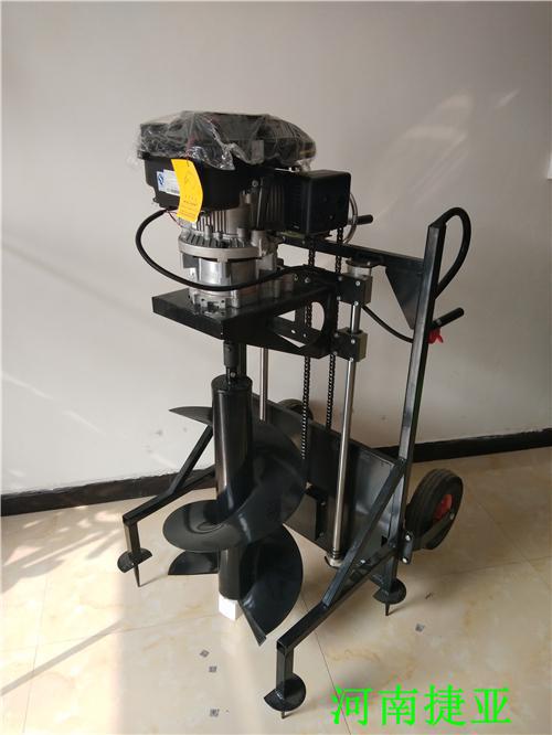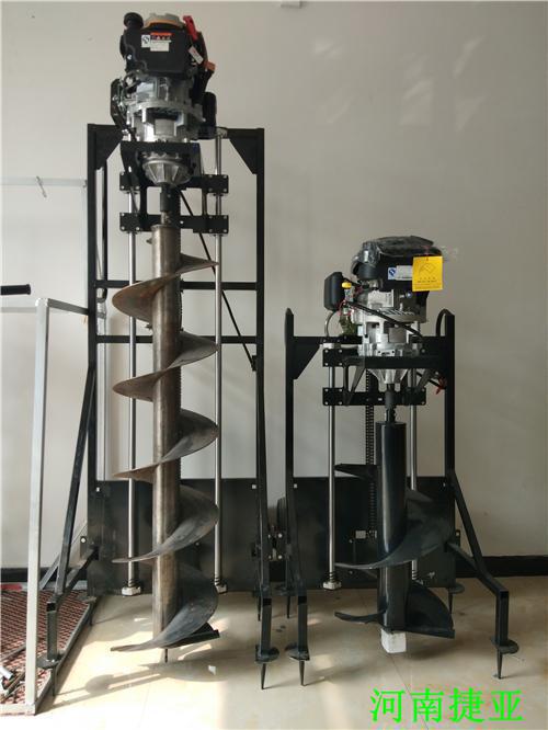挖坑機螺旋鉆孔是利用汽油機在地面打大坑徑栽電桿的機器,是國家電網(wǎng)常用產(chǎn)品,是需求量*大的栽桿工具。河南捷亞園林打坑機每年產(chǎn)銷數(shù)量領(lǐng)居前茅,用于農(nóng)林業(yè)種植打坑作業(yè)和電力、光伏、路標等的栽植鉆洞作業(yè),新農(nóng)挖坑機,投資少、見效快,一臺機器是人工的幾十倍、是小型挖掘機的幾倍。其結(jié)構(gòu)包括直立機架:支撐機器,保護操作者。機座連接發(fā)動機及下壓部分。發(fā)動機:動力輸入部分。減速箱:增加扭矩,動力輸出部分(本機采用弧齒免維護減速機)。操縱裝置:手握操作及腳踩操作機械部分。腳輪:采用加粗輪胎便捷移動部分。定位錐:消除鉆頭工作時產(chǎn)生的扭力。工作鉆頭:螺旋工作鉆頭部分。使用操作方法;啟動發(fā)動機,手握操作桿,加大油門,提高發(fā)動機轉(zhuǎn)速下按操作桿,同時也可以用腳踩踏板,下壓至底點,然后松開腳,向上抬操作桿,在滑桿上兩條壓力彈簧共同作用下,機座回升到初始位置,油門推回怠速位置工作結(jié)束。安全可靠,性能優(yōu)異,本機滑桿上裝有壓力彈簧輔助人力起升鉆頭,省力、省時效率高,質(zhì)量優(yōu),成本低,裝有腳輪使移動輕松便捷。