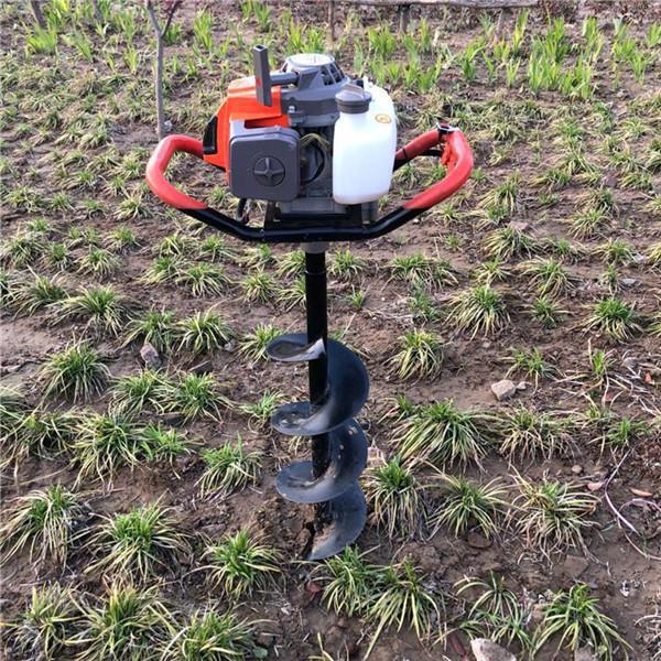 小型汽油挖坑機(jī)的油門安全控制裝置,包括操縱架,操縱架相對(duì)的兩側(cè)分別設(shè)有把手,右側(cè)為油門操縱把手,左側(cè)為操縱架平衡把手,操縱架上方固定設(shè)有油門控制裝置。油門控制裝置與操縱架中間位置所安裝的汽油機(jī)通過油門線相連接,油門控制裝置一側(cè)設(shè)有觸碰桿,油門操縱把手通過油門線與油門控制裝置相連接。在扭矩和軸向力的作用下切削土壤,切下的松碎土壤沿導(dǎo)土片工作面上升,運(yùn)到地表后被拋離到坑的周圍,經(jīng)減速機(jī)的輸出軸與螺旋鉆相連接,使螺旋鉆進(jìn)行順時(shí)針旋轉(zhuǎn),從而使固定在螺旋鉆頭上的兩片刀片實(shí)現(xiàn)切割和螺旋出土挖坑的目的??v裝置常采用可拆卸式的手柄結(jié)構(gòu),可配置成單人或雙人操作。鉆頭由鉆尖、刀片、導(dǎo)土片和鉆桿組成。鉆尖起定位作用,刀片用于切削土壤,導(dǎo)土片則主要起升土作用。作業(yè)時(shí)鉆頭垂直向下運(yùn)動(dòng),在扭矩和軸向力的作用下切削土壤,切下的松碎土壤沿導(dǎo)土片工作面上升,運(yùn)到地表后被拋離到坑的周圍。鉆頭其他直徑(mm):40 60 80 100 120 00 400MM 500MM,看需要選擇,挖坑的深度看土質(zhì)來(lái)決定的 。