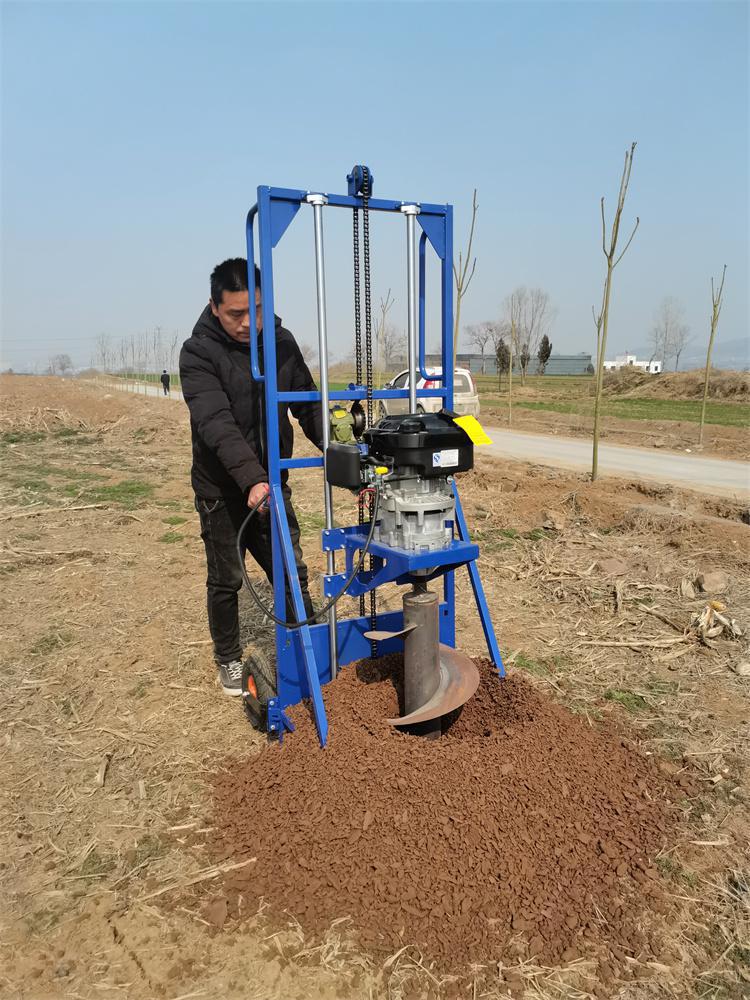 立樁鉆孔機(jī)改變了原業(yè)復(fù)雜鉆機(jī)的工作效率,一般土質(zhì)可鉆孔速度是1.5米深不到1分鐘即可鉆好,采用優(yōu)質(zhì)大功率專用汽油發(fā)動(dòng)機(jī),機(jī)身輕,動(dòng)力大,合金螺旋式鉆植,加厚齒型鉆頭刀尖,讓下鉆更省力,加厚的螺旋葉片更持久耐磨,刀片水平切削上壤,小石快和小樹(shù)根輕輪切斷,土塊在旋轉(zhuǎn)的螺旋面上被松碎、再由葉片輸運(yùn)到洞口流出,適合在各種小地塊,坡地,山地,丘陵農(nóng)村的電力施工作業(yè),代替了人工無(wú)法完成的高難度鉆孔問(wèn)題。是現(xiàn)代電力鉆孔不可缺少的小型設(shè)備。我司生產(chǎn)的大功率凍土挖坑機(jī)適用于任何土層,