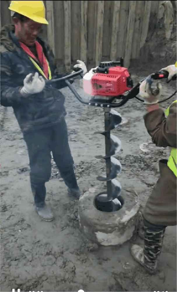 管樁芯掏泥機此系列機械采用工程A級配置,大馬力發(fā)動機,大扭矩減速機,螺旋鉆桿部件都采用雙螺旋整體刀片,鑄鋼加強件組成,通過離心式離合器將動力傳輸?shù)絻杉夶X輪變速箱,通過變速箱的輸出軸將動力傳輸?shù)降劂@頭,地鉆頭下面裝有優(yōu)質合金鋼刀片,鉆削過程中的泥土通過螺旋葉片導向排出洞外。管樁掏泥機是一種快速掏樁芯泥土的機械。它吸取了國內外小型鉆機的優(yōu)點,以輕便、效率高為目標設計而成,主要 適用于土層、沙土層和巖層中鉆進。管樁掏泥機的優(yōu)點,是能對各種樁柱進行深度清理,樁芯掏泥機安裝步驟:將挖坑機和鉆頭側放在地上,使輸出軸和鉆頭基本處于同一水平位置;將鉆頭套裝在輸出軸上,并對準銷軸安裝孔位,安裝孔成直線排列;將銷軸穿過輸出軸和鉆頭上的安裝孔,連接輸出軸和鉆頭;將開口銷穿過銷軸,固定銷軸。