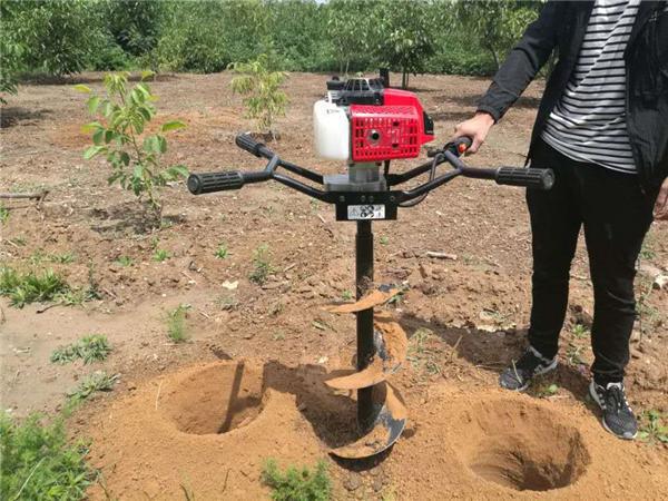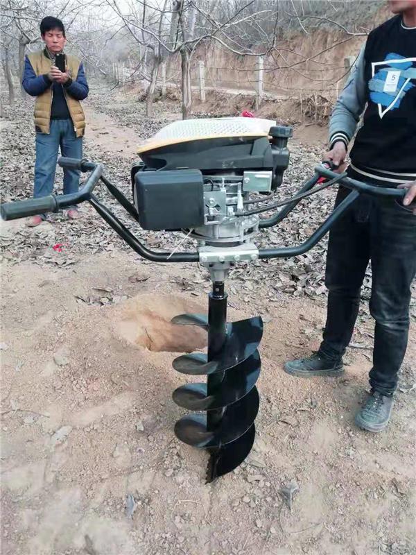 手提挖坑機至少包括一個人操作的兩個操作把手,兩個操作把手之間的寬度通常大于操作人員站立時的寬度,這樣,操作人員在作業(yè)時的手會向外伸出一段距離,而現(xiàn)有技術(shù)中的操作把手都是水平的,操作人員作業(yè)時手腕會十分的自然,不容易使操作人員產(chǎn)生手腕疲勞。挖坑機主要動力有4.0馬力 5馬力 6馬路 7馬力 8馬力 9 馬力10.0馬力。主機動力大小不一,鉆頭規(guī)格多樣,根據(jù)自己使用的實際情況配置合理的挖坑設(shè)備。螺旋式挖坑機原理鉆尖起定位作用,刀片用于切土壤,導(dǎo)土片則主要起升土作用。作業(yè)時鉆頭垂直向下運動,在扭矩和軸向力的作用下切削土壤,切下的松碎土壤沿導(dǎo)土片工作面上升,運到地表后被拋離到坑的周圍。鉆頭按導(dǎo)土片和刀片的形狀,分螺旋型、葉片型和彎刀型3種,鉆頭上還可備有鉆桿套和防護罩,以防止鉆桿被草纏住并起安全保護作用。