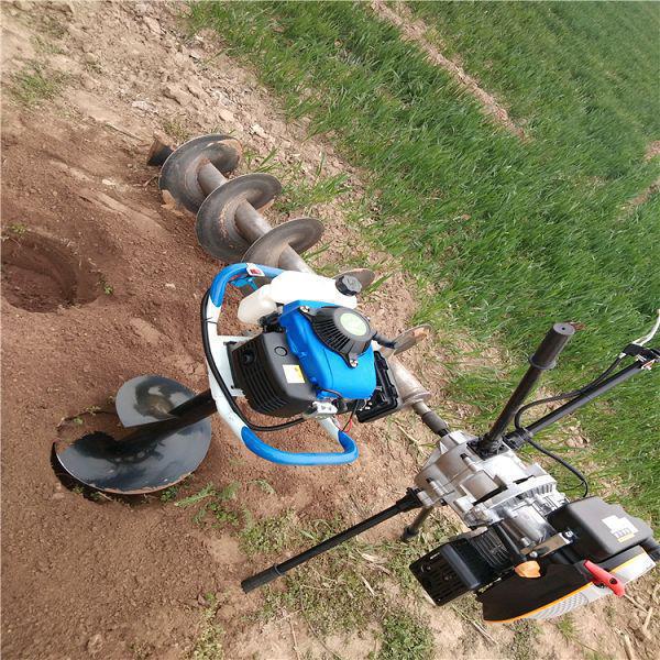 汽油挖坑機(jī)有單人或雙人操作的機(jī)型.還有手推版挖坑機(jī),主要結(jié)構(gòu)由機(jī)架、操作手把、汽油發(fā)動機(jī)、燃油箱、變速離合器、鉆頭等部分組成。一般采用小型二沖程1.9-4.0千瓦風(fēng)冷式汽油發(fā)動機(jī)作動力,挖坑直徑20-30厘米,挖坑深度35-50厘米.作業(yè)效率60-80穴/時,整機(jī)重量10公斤(單人機(jī))、25公斤(雙人機(jī)),外型尺寸60厘米40厘米30厘米(單人機(jī))、110厘米50厘米100厘米(雙人機(jī))。手提式挖坑機(jī)適應(yīng)性很強(qiáng),不但可作為植物挖坑之用,還可在建筑工地、地質(zhì)礦山、電力交通等部門用于埋設(shè)樁柱、勘探打眼等作業(yè)。